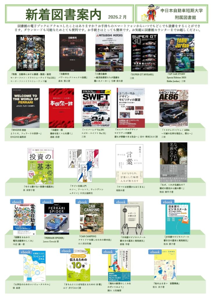 こちらからもご覧いただけます→新着資料 中日本自動車短期大学附属図書館